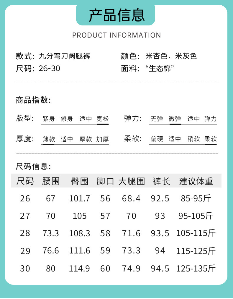【大牌代工厂出品】和顺圣棉感后松紧阔腿九分裤26023·米杏色