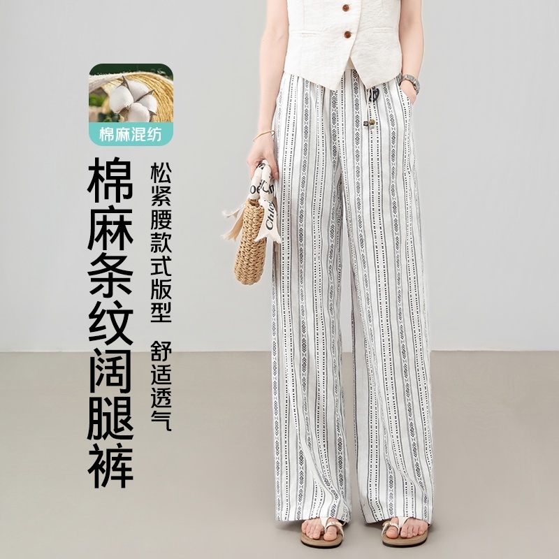 【大牌代工厂出品】和顺圣老钱风棉麻提花阔腿裤26030·条纹