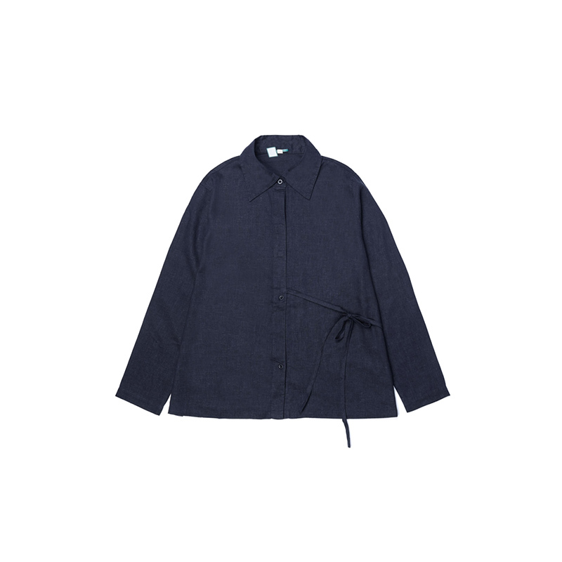 锦上缘女式腰绳装饰衬衣·蓝黑色