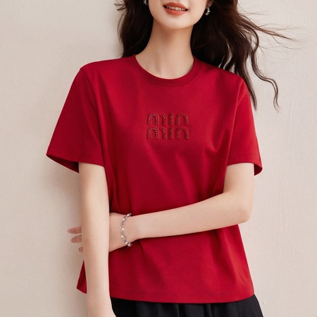 【95匹马棉】修娴字母烫钻T恤W38·新年红