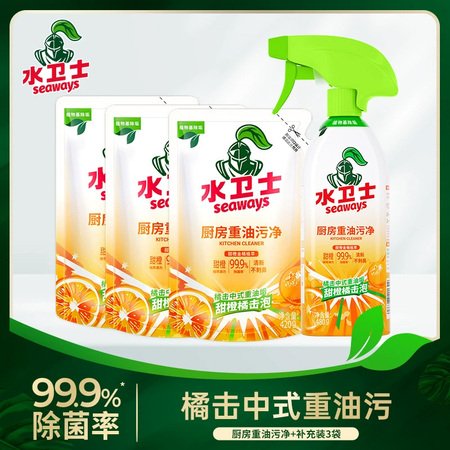 水卫士·厨房油污净清洁剂480g*1瓶+420g*3袋
