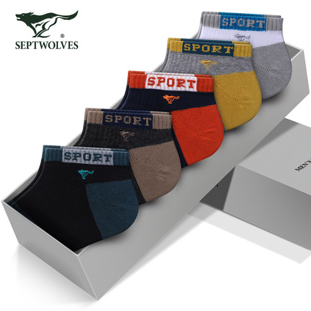 七匹狼男士全棉户外船袜纯棉短袜短筒袜80499·混色5双