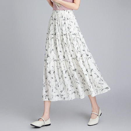 梦卓旋松紧腰雪纺印花半身裙XBMY-A682·白色