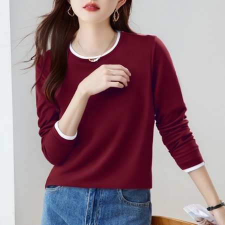 【92精梳棉】轩凌子撞色领袖长袖T恤XS82430125·安可拉红