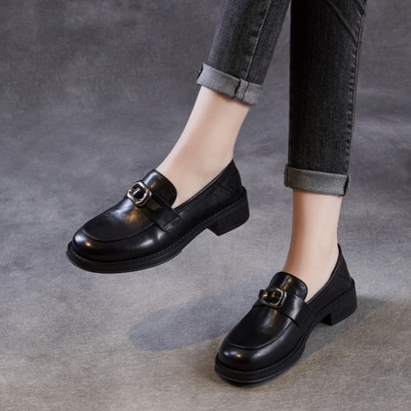 【手抓纹头层牛皮】至美轻软金属扣乐福鞋ZM269010·黑色